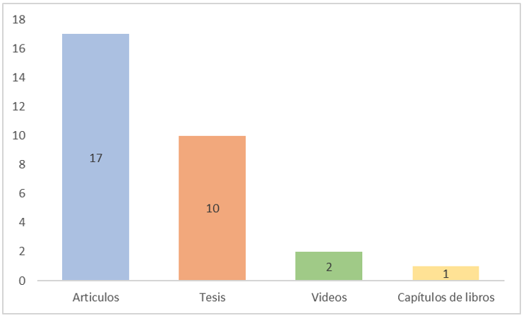A continuación, se va a hablar sobre los cuatro tipos de documentos en el siguiente orden: artículos investigativos, tesis, vídeos y capítulos de libro. En cada uno de ellos se evidencian los diferentes constructos teóricos que componen la investigación.