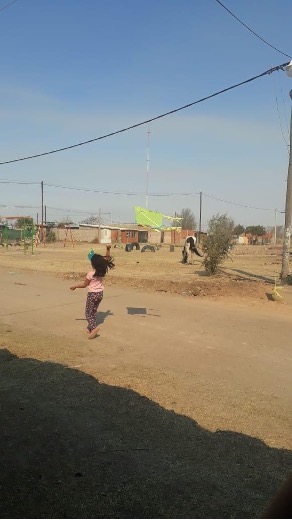 El centro de la fotografía es el movimiento de la niña corriendo y el barrilete volando; en el espacio público de la calle, el paisaje lúdico adquiere dinamismo. En la aridez de las calles de tierra, la referente comunitaria recorta esta escena y da lugar a una narrativa de juego y libertad. La imagen captura un momento festivo, colectivo, organizado y pensado para las infancias del barrio. La intención era recuperar lo lúdico, la diversión y el encuentro. Esta escena contrasta con la vivencia cotidiana del encierro de niños, niñas y adolescentes, quienes anhelaban retomar sus rituales de interacción: salidas al aire libre, visitas a la plaza, al parque, a las sierras, encuentros con amistades, salidas a comer y tomar algo en las afueras barriales. Volver a ocupar —y ver ocupar —los espacios barriales era un anhelo compartido con el mundo adulto. En este sentido, leer este paisaje lúdico desde la perspectiva de quienes lo habitan y le otorgan pulso vital a diario hace inevitable la dualidad de emociones la tristeza de verlo desierto y la alegría de verlo vivo practicado y habitado.