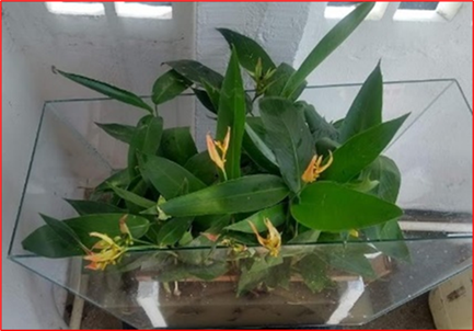 Por su parte, la muestra del río Bogotá se sometió a un tratamiento en humedal de flujo subsuperficial con la especie Heliconia psittacorum Andrómeda (Figura 2). Una vez finalizada la fase de acondicionamiento de las plántulas, se cargó el humedal con 20 litros de agua del río Bogotá y se mantuvo en el sistema durante tres días, evaluando a diario los parámetros fisicoquímicos. La caracterización de la muestra evaluó los siguientes parámetros: NH4+, NO2-, NO3-, PO4-, color, turbidez, sólidos suspendidos, alcalinidad y dureza por espectrofotometría. Los datos se registraron para muestras tomadas en periodo de lluvias y en periodo de sequía.
