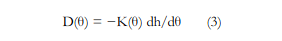 La conductividad (K) y la difusividad hidráulica (D) para un medio poroso no saturado se relacionan por medio de la ecuación (3):