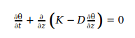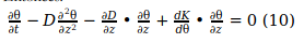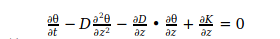 Al restringir el estudio a un movimiento del agua exclusivamente vertical (xi = xj) = z y sin fuentes o sumideros (S = 0), se logra reducir el modelo de tres tridimensional a una dimensión, tal como se observa al escribir la ecuación (7):
