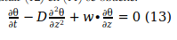 La ecuación (10) es altamente no lineal, lo cual impide encontrarle una solución exacta; entonces, para resolver y encontrar un resultado analítico, se debe considerar el caso hipotético en el cual la difusividad D sea del orden C0 respecto a z, lo cual se basa en los bajos valores de difusividad que son de 0,005 m2 s-1 en suelos arcillosos y de 0,008 m2 s-1 en suelos arenosos [20]. Dado que los valores son extremadamente pequeños, se pueden asumir los valores de D como constantes y así eliminar la no linealidad de la ecuación como lo planteó [21]. Así, tenemos que: