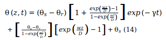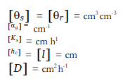Dónde: Ks es la conductividad hidráulica para el caso saturado; θr es el contenido de agua residual presente en el suelo; θs es la razón entre el volumen de agua en el interior de los poros del suelo y el volumen total de vacíos.