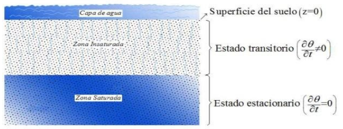 Al estar en la superficie del suelo, el agua infiltra hacia su interior y ocupa las cavidades intersticiales obligadas por fuerzas de distintas naturaleza, intensidad y dirección. El movimiento del agua en el suelo ocurre en el caso saturado y en el no saturado. El flujo de agua en un suelo no saturado es el que ocurre sujeto a cualquier condición de humedad menor a la de saturación.