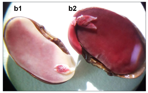 • Vigor alto: semilla completamente turgente y teñida de color rojo.
