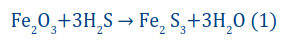 Al comparar el tiempo de uso de los extrudados cuando alcanza una concentración de H2S en el biogás del 50 % de la concentración inicial, se mantiene la tendencia ascendente indicada: 30 min duró la muestra con un 5 % de cobre; mientras que las muestras con un 10 % y un 15 % la alcanzaron a los 420 minutos. Uno de los primeros procesos para la remoción de compuestos de azufre de gases industriales utilizaba Fe2O3 [25] de acuerdo con la reacción:
