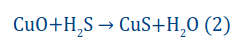 Sin embargo, en las condiciones de trabajo el Fe2O3 contenido en la arcilla no es efectivo para la remoción de H2S. Al añadir cobre al extrudado con NaOH, se observa que la remoción del H2S mejora al aumentar el contenido de cobre en el sólido, y si se considera que en el sólido el cobre está presente como CuO, es posible que ocurra una reacción similar a la reacción (1), para formar CuS. La estequiometría de la reacción (2) está de acuerdo con el incremento de la cantidad de H2S removida al aumentar el contenido de cobre: