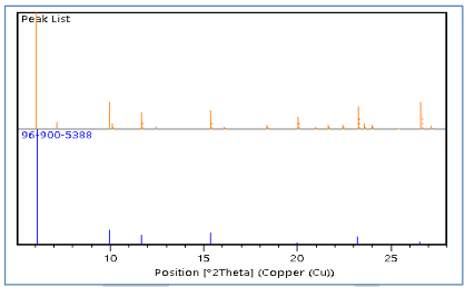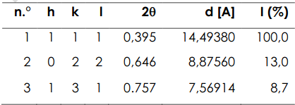 Las características sobre los índices de Miller de la zeolita faujasita X se compararon con la base de datos de Collection of Simulated XRD Powder Patterns for Zeolites y los obtenidos en el programa High Score Plus. La comparación muestra similitud en la mayoría de los valores, como aparece en las tablas 2 y 3 [