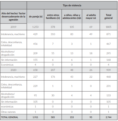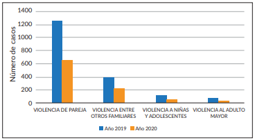La violencia contra la mujer dentro del ámbito familiar representa una de las problemáticas más comunes de la sociedad. Según cifras del Instituto Nacional de Medicina Legal y Ciencias Forenses, durante el año 2019 se presentaron 77.303 casos de violencia intrafamiliar, de los cuales 76,2 % se dio en mujeres.
