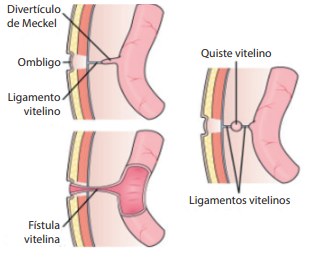 En un escenario emergente pueden aparecer diversos síntomas, dependiendo de la configuración de la estructura remanente y de la presencia de mucosa ectópica. Las tres presentaciones clínicas o complicaciones más frecuentes en la población pediátrica son la hemorragia intestinal (30-56 %), la obstrucción intestinal (14-42 %) y la inflamación diverticular (6-14 %) (1).