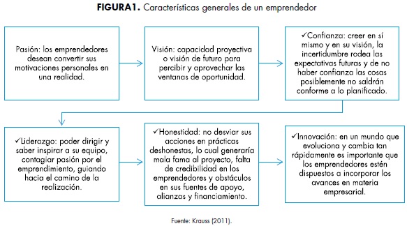 El emprendedor es una persona que plantea crear un negocio sobre una oportunidad que visualiza en el mercado. Tiene la motivación y la habilidad para administrar recursos y estar en permanente búsqueda de nuevas oportunidades (Alcaraz, 2011; Instituto Latinoamericano de Estudios de Posgrado, 2019). Para Krauss (2011), un emprendedor es capaz de asumir riesgos, innovar, organizar y promover gestión organizacional. Todos estos aspectos, considerados desde la responsabilidad social empresarial para el fomento del emprendimiento, se encuentran consignados en la siguiente figura (figura 1).