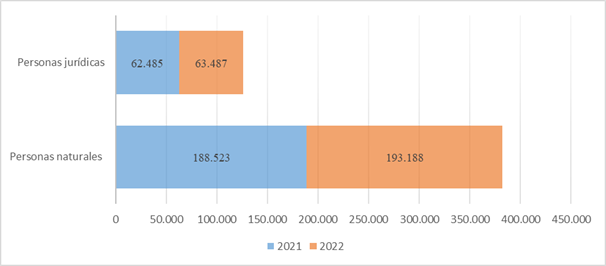 En ese sentido, el estudio se orientó a indagar la forma como desde la teoría del endomarketing se pueden extraer líneas estratégicas que faciliten la transformación de la cultura organizacional en las pymes de la ciudad de Barranquilla, tomando en cuenta que estas unidades económicas concentran cerca del 80 % del empleo, según datos de la Confederación Colombiana de Cámaras de Comercio (Confecámaras, 2022). En el informe Dinámica de creación de empresas en Colombia, Confecámaras señaló que entre enero y septiembre de 2022 se registró la puesta en marcha de 256.675 unidades productivas (personas naturales y personas jurídicas), que evidencia un crecimiento del 2,3 %, en comparación con el año 2021, como se muestra a continuación (Figura 2).