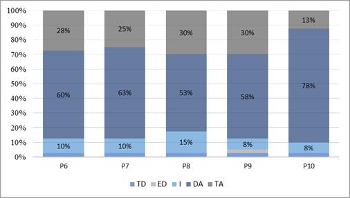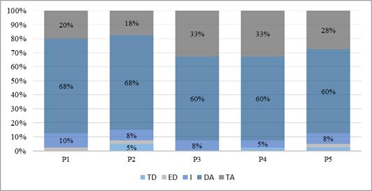 En la gráfica se evidencia que cerca del 85 % (DA y TA) ha identificado beneficios al desarrollar iniciativas relacionadas con el marketing interno. Lo anterior se apoya en la presencia de acciones que se sustentan en el marketing digital desde el interior de cada organización, la gestión oportuna de la cultura organizacional, la asignación de recursos para dar continuidad a las estrategias planificadas y el seguimiento de planes de mejora permanentes para lograr una ágil adaptación a los cambios que exige el entorno de acción. Finalmente, se presentan los resultados para el componente estratégico (Figura 7).