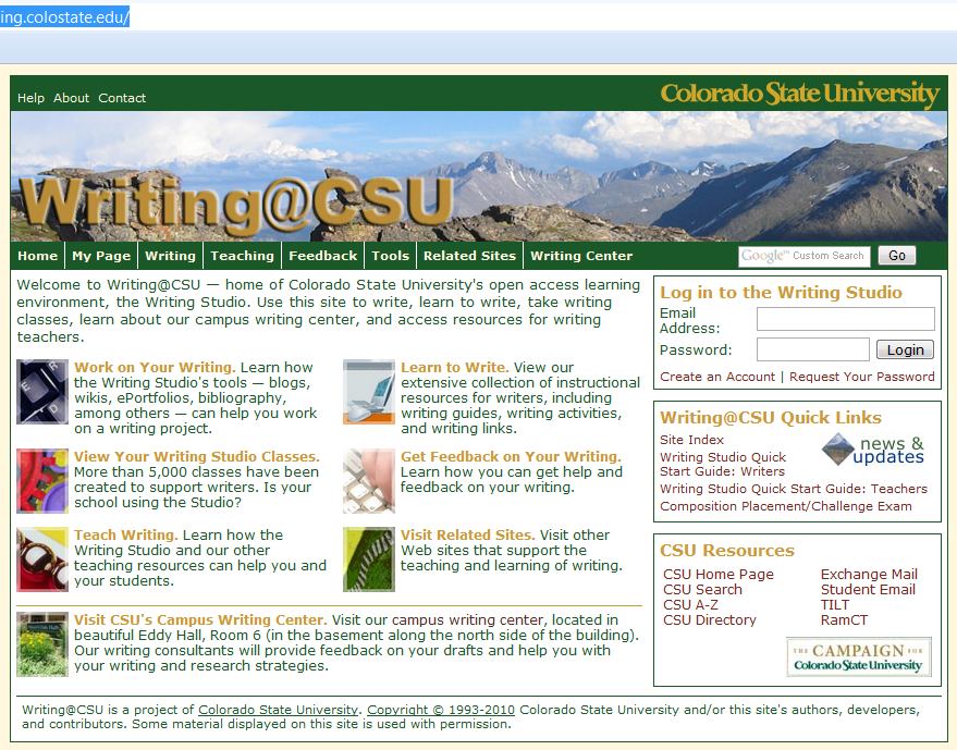 Figura 1: Página de inicio del centro Wrinting@CSU.