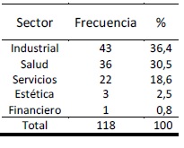 Con respecto al sector económico se observa que en su mayoría los trabajos de grado se desarrollaron en el sector industrial, seguido de los sectores salud y servicios (ver Tabla 2). Los sectores donde no se realizaron trabajos fueron educación y comercio.