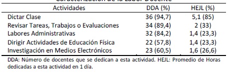 Los docentes realizan diversas actividades, siendo la más común la de dictar clase de manera magistral, seguida de revisar tareas, trabajos o evaluaciones y labores administrativas. En cuanto al tiempo de ejecución la actividad que representa la mayor dedicación al día es dictar clase (ver Tabla 3).
