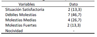 El 46,7% de la población docente observada y evaluada con el método EPR, presenta nivel de riesgo 2 es decir débiles molestias durante la ejecución de su actividad laboral; seguida del nivel 3, molestias medias con un 26,7% (ver Tabla 5).