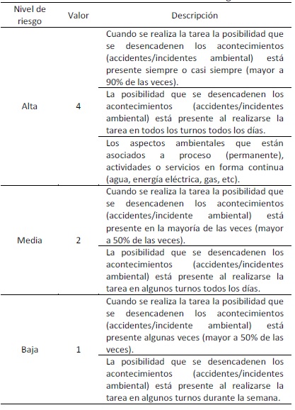 TABLA 1 Probabilidad de ocurrencia de un riesgo