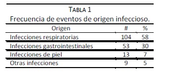 TABLA 1 Frecuencia de eventos de origen infeccioso.