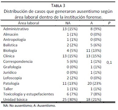 TABLA 3 Distribución de casos que generaron ausentismo según área laboral dentro de la institución forense.